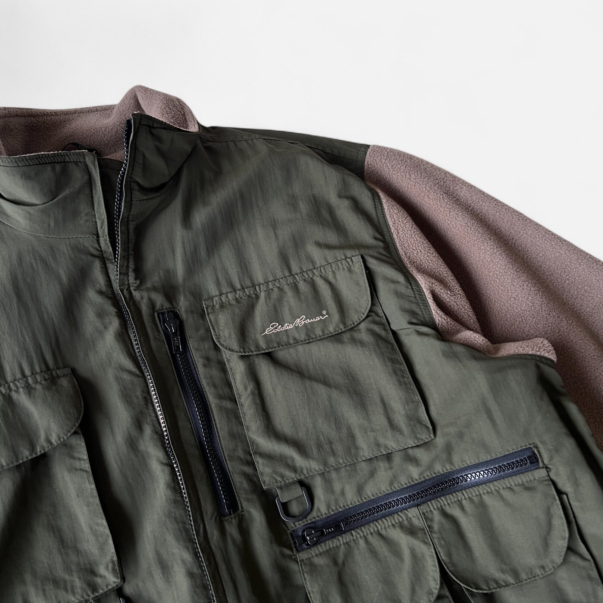 80s Eddie Bauer Fishing Fleece Jacket Olive XL