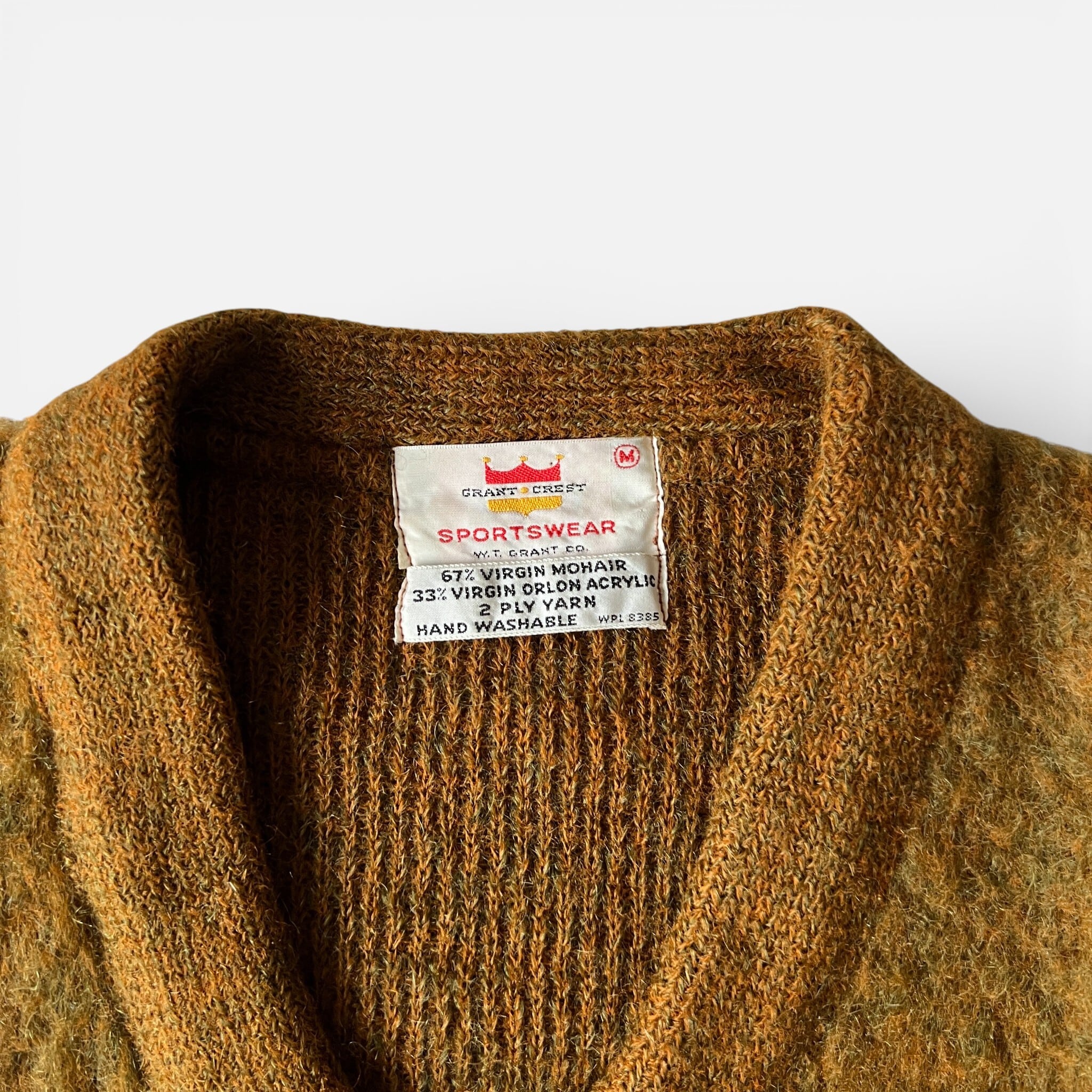 60s GRANT CREST SPORTSWEAR Mohair Shaggy V Neck Sweater M