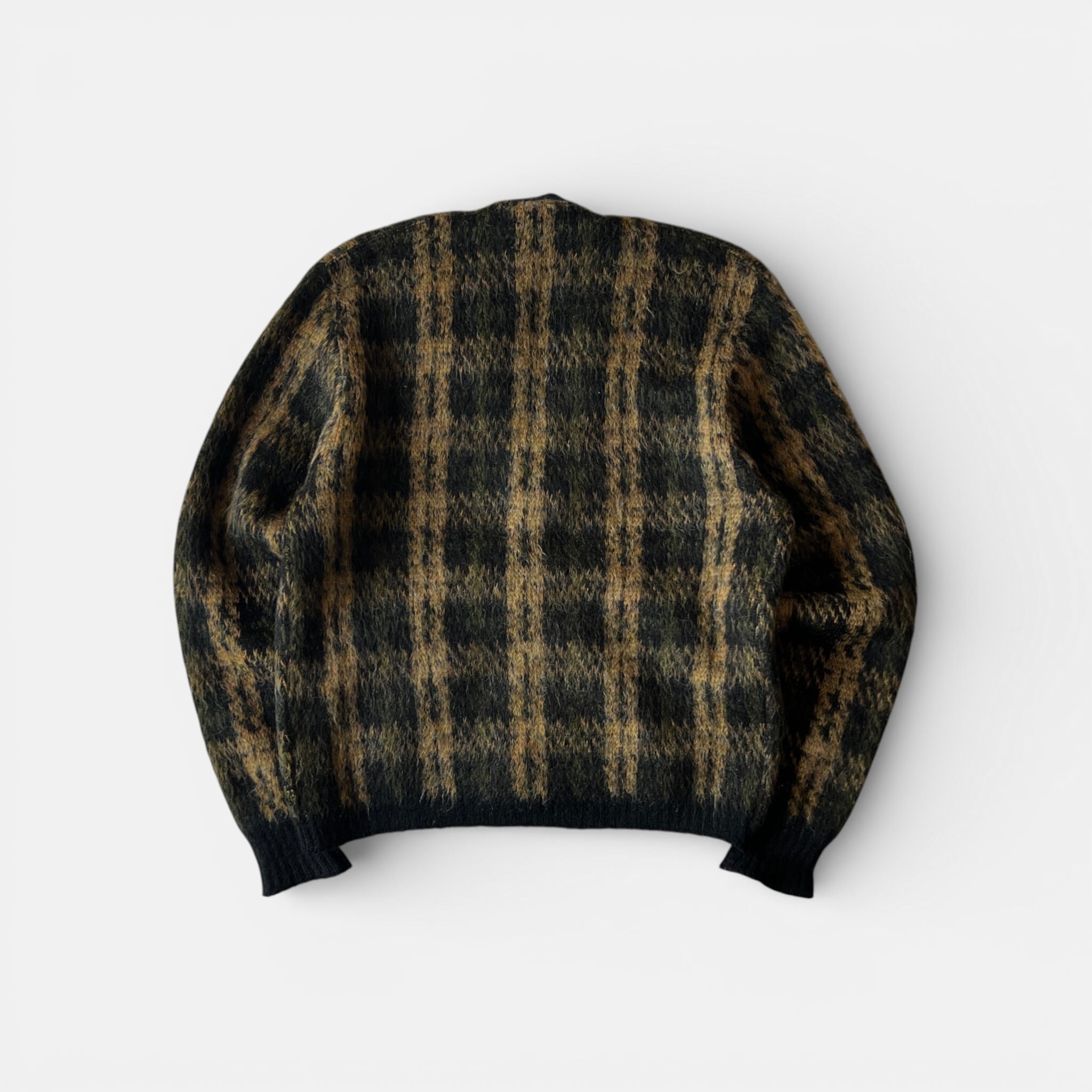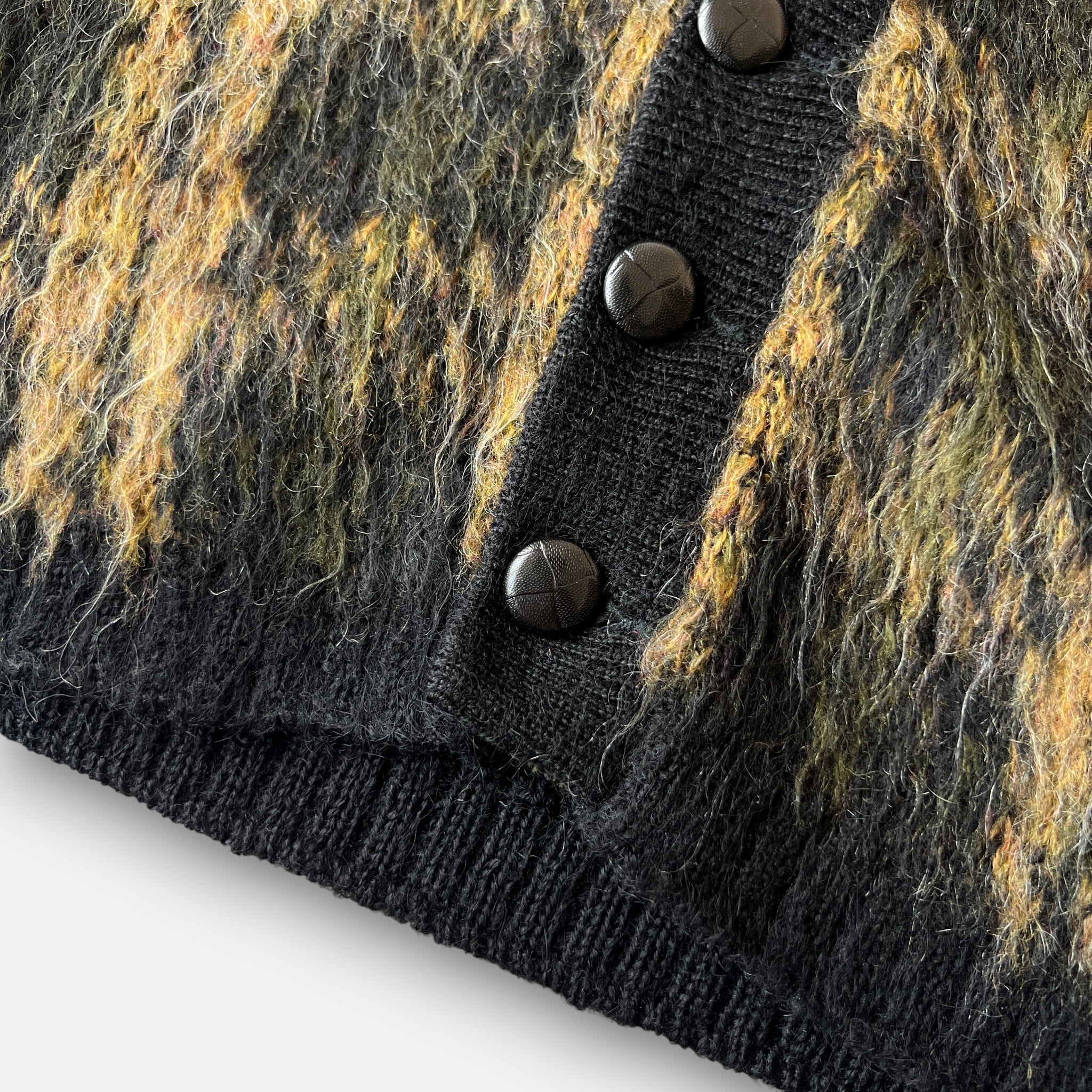 希少なブラックベースのモヘアカーディガン。