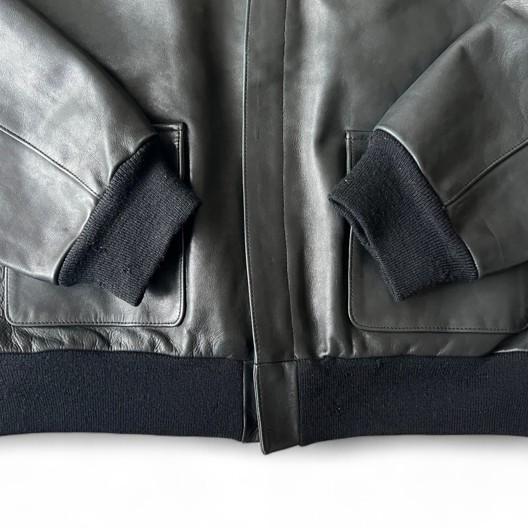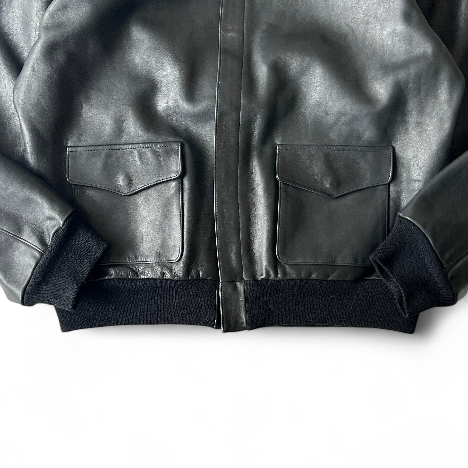 本来男臭いはずのA-2ジャケットですが、素材、シルエット、カラーのおかげで品のある一着に仕上がっています。レザーの質もそこらのメゾンブランドと遜色ないないレベル。 A-2は着づらい物が多いですが、このA-2は擦り切れるまで着ると思います。多分