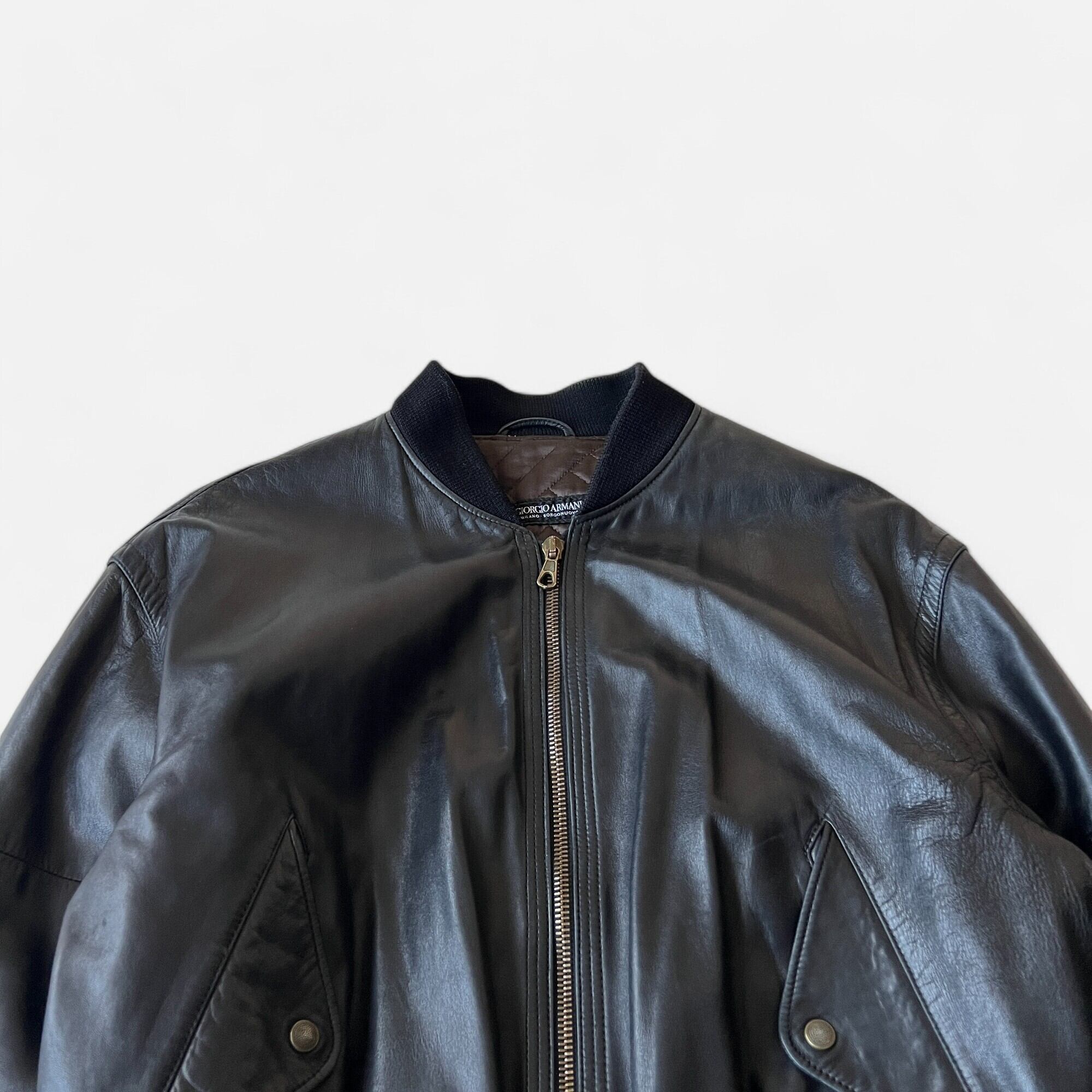 90s Giorgio Armani Leather Bomber Jacket 50